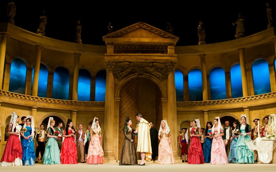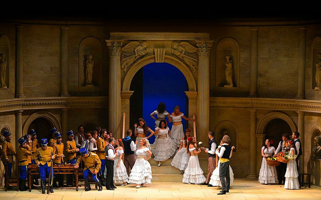 This dazzling production with orchestra features Bizet’s unforgettable melodies including ‘The Toreador’s Song’, Carmen’s enticing ‘Habanera’, and Don José’s lyrical ‘Flower Song’ in a setting evoking the stunning architecture of Seville and its main square with Roman and Moorish influences.