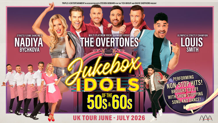Jukebox Idols features non-stop hits from the idols of the 50s and 60s starring the UK’s leading platinum-selling vocal harmony group, The Overtones, Strictly Come Dancing’s stunning Nadiya Bychkova and Olympic gymnast and Strictly Come Dancing champion Louis Smith MBE.